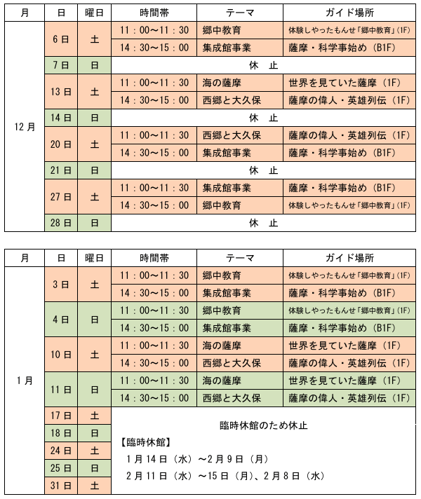 毎週土日の午前、午後の一日2回当館の歴史解説員と特別顧問による