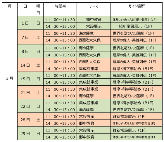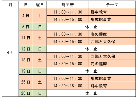毎週土日の午前、午後の一日2回当館の歴史解説員と特別顧問による