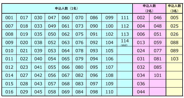 受付番号とは申込フォームからの申込時に自動返信される受付メールに記載された3桁の数字です。