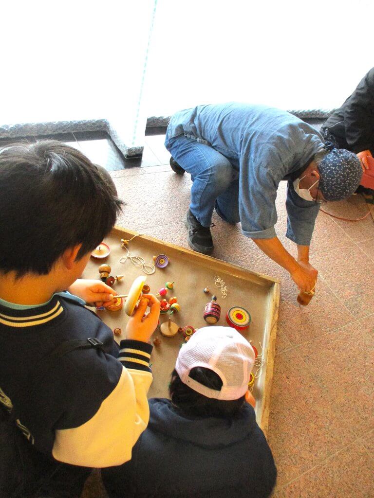 色々なかたちのこまを使い、伝承遊びのこままわしを楽しめます🤩