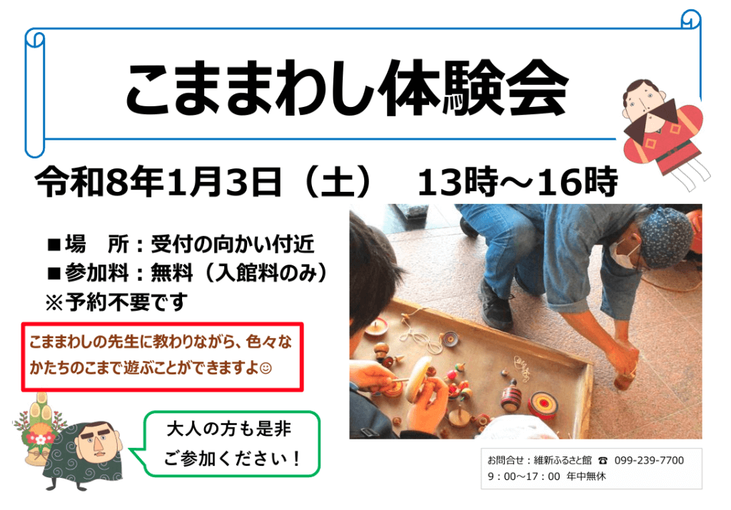 令和8年1月3日(土)はこままわしあそび体験会を開催いたします✨(ご案内PDF)
